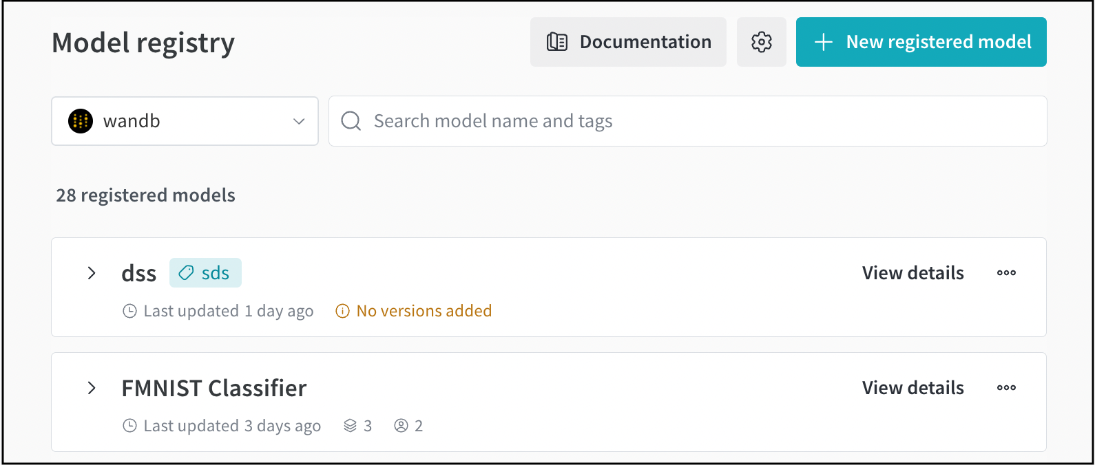 1. Navigate to the W&B Model Registry app at https://wandb.ai/registry/model.